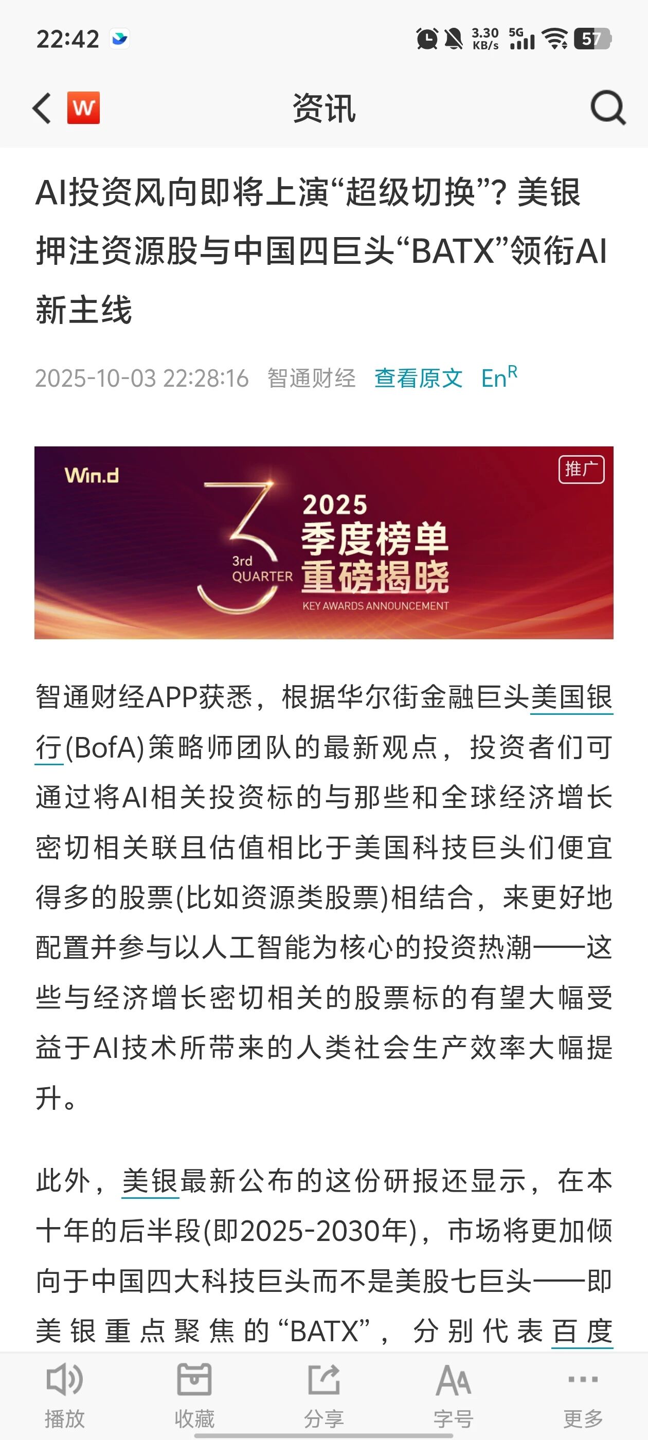 昨天美银还发了一篇报告,提了两个观点。首先是可以从美股的M7开始适度转向关注中国的BATX。这不就是我们之前说的中概互联的配置吗?《再次验证!这张表格的含金量还在不断提高 》