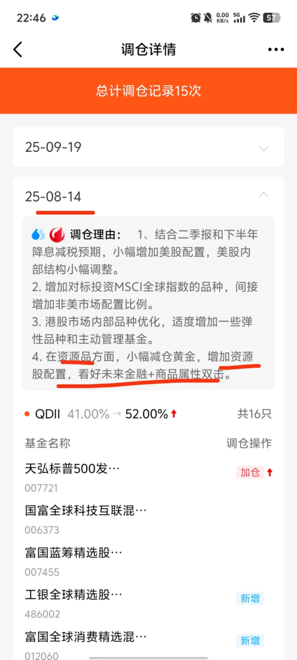 所以美银的这两条建议,你还别说,在我跟投的表韭全球投顾组合里面都有落实,并且是一早都配置的。比如像资源品板块,在今年4月份就最初有配置,8月份又有了加仓;而英国市场也是在4月份的调仓就已经有了配置。