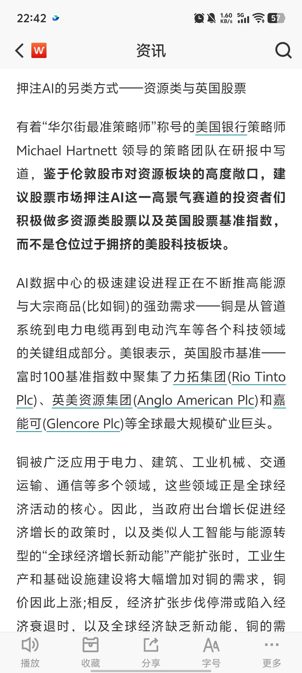 另外一方面就是重视资源品板块,因为AI的发展需要大量的资源品消耗,美银给的建议就是配置资源品加英国股票市场。想必前者是大家肯定能够想到的,我们之前也持续提示资源品板块的投资机会,《资源品板块的涟漪正逐渐扩散》。