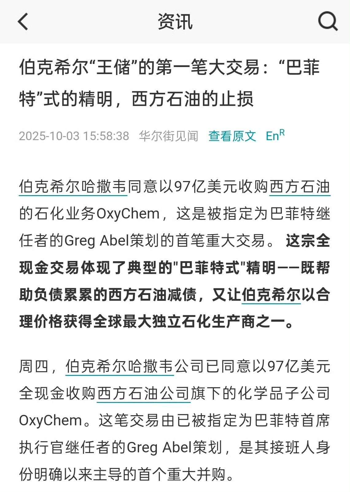 据说巴菲特接班人也爆买石油股了,其实巴菲特一直就很喜欢石油,嗯,这很美国。