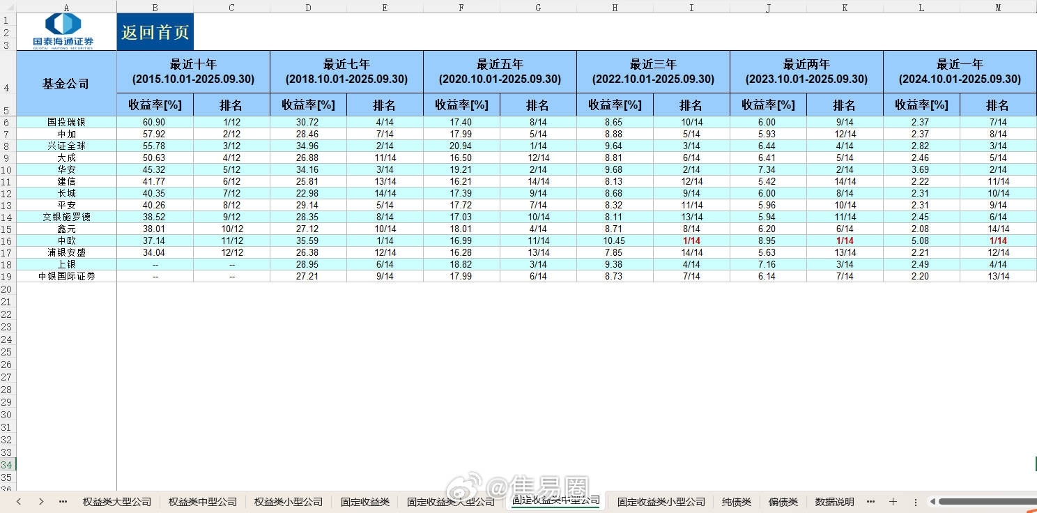 还有,中欧基金在固收中型公司中,近1、2、3年的业绩也都追到了第一,看出来已经在发力了