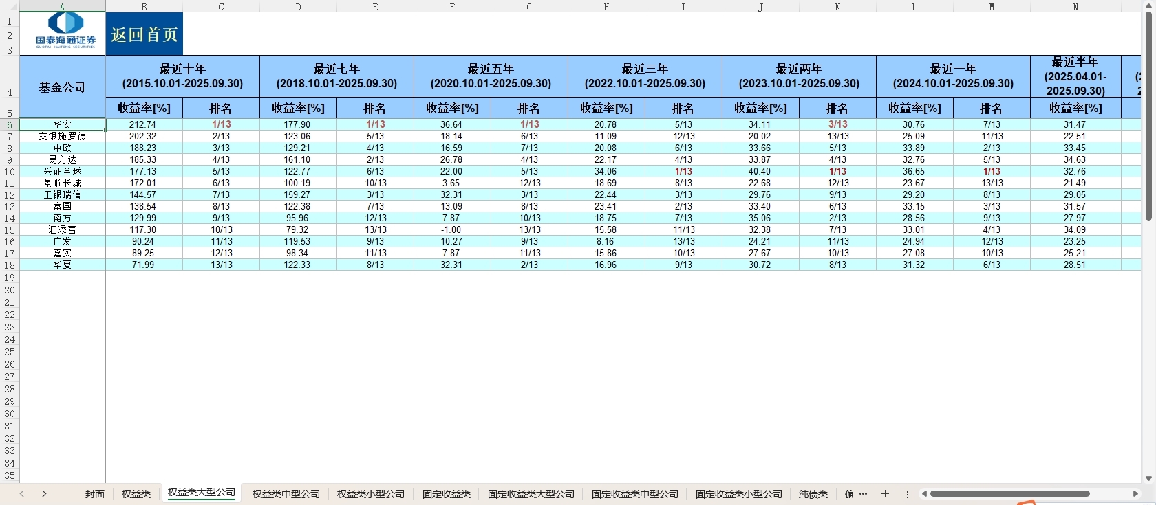 易方达短、中、长期全部位于前列,业绩连贯性太稳了