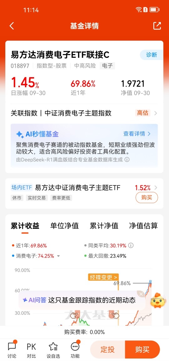 现在大家的生活都离不开电子设备,手机电脑智能家居更新换代飞快。这背后就是消费电子行业的强大动力。消费电子ETF把市场上这些优秀企业都打包了,涵盖了从芯片到组装的全产业链,能让你一网打尽行业红利。而且随着5G、人工智能的快速发展,消费电子产品的需求只会越来越大。行业前景明朗,投资消费电子ETF,就是搭乘科技发展的快车,稳稳地享受行业增长带来的收益。@易方达基金