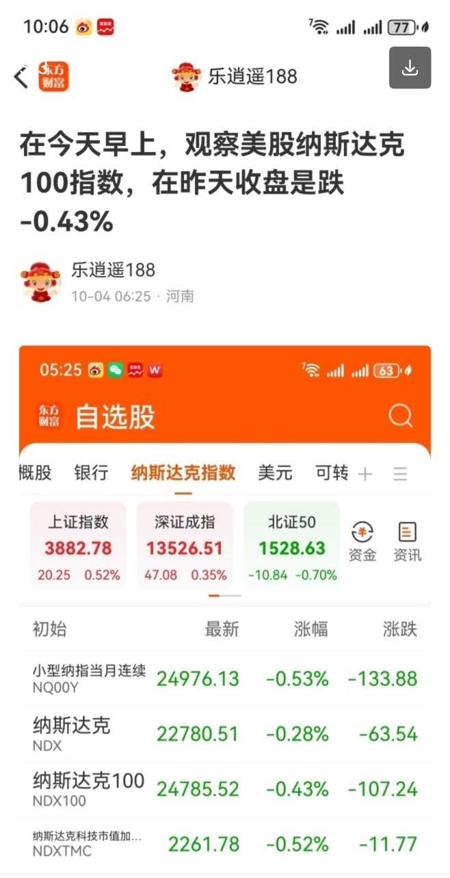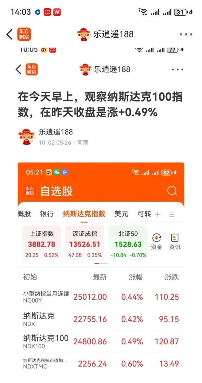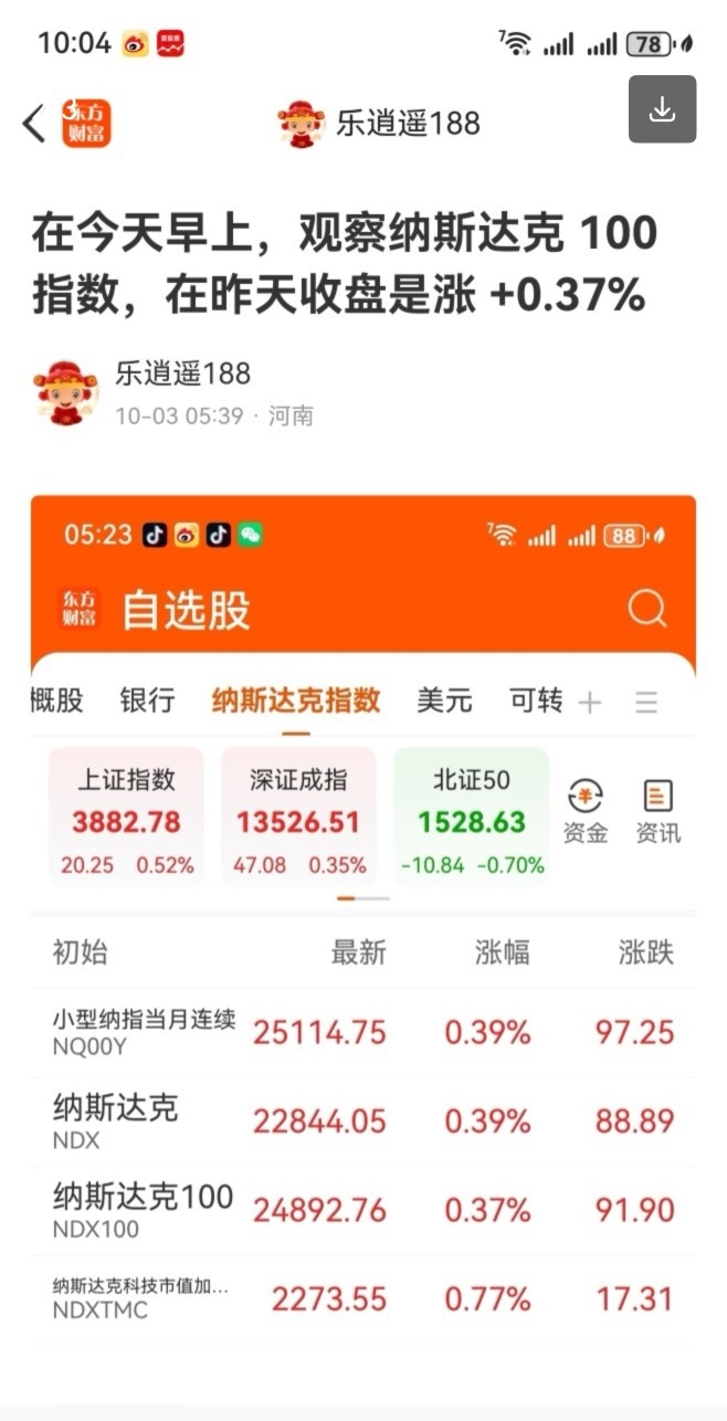 根据观察纳斯达克100指数,从上周三10月1日至昨天周二这7个交易日一共就只是涨+0.66%这点涨幅的。