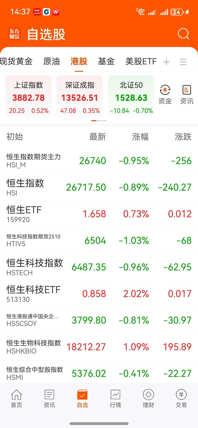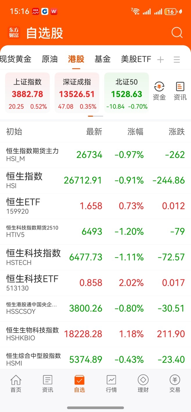 然后就观察港股,好像从上周五那天,与在前天周一那两天表现都是跌的。