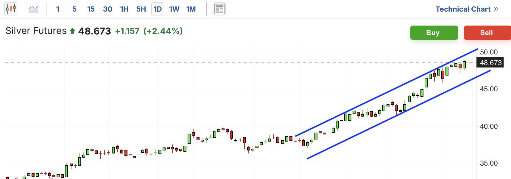 黄金、白银近期了拉升一波行情,短期进入上升通道,黄金突破通道上沿,有些超买,目前还没有回落迹象。白银受阻于通道压力位,目前沿着压力位震荡上行。