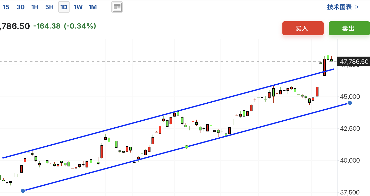 日经指数最近一直震荡上行,前两日突然大幅飙升,突破上升通道压力位。这两日因超买而回落,暂时没有改变上行趋势,短期可能陷入盘整回调阶段。