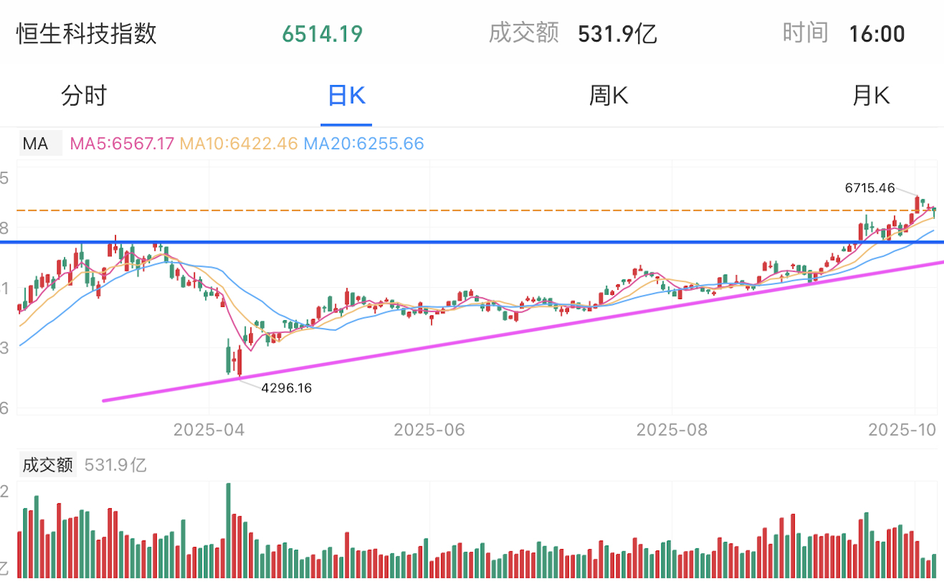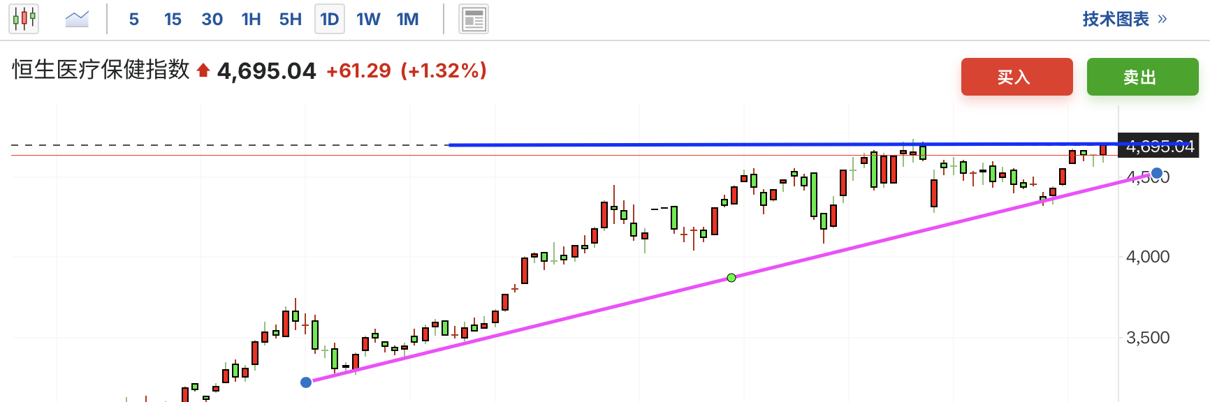 恒生医疗此前涨幅大,最近进入盘整期,这几日再攻,反弹至压力位,突破才能开启新的上涨行情。
