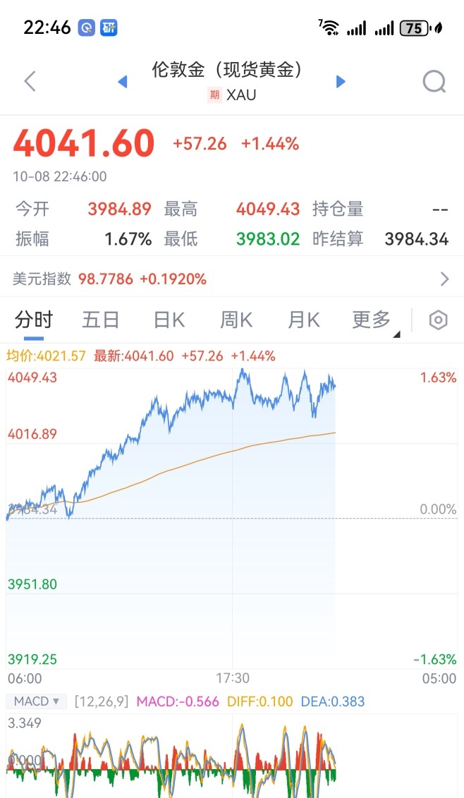 在今天晚上22点46分,观察现货黄金是涨+1.44%。