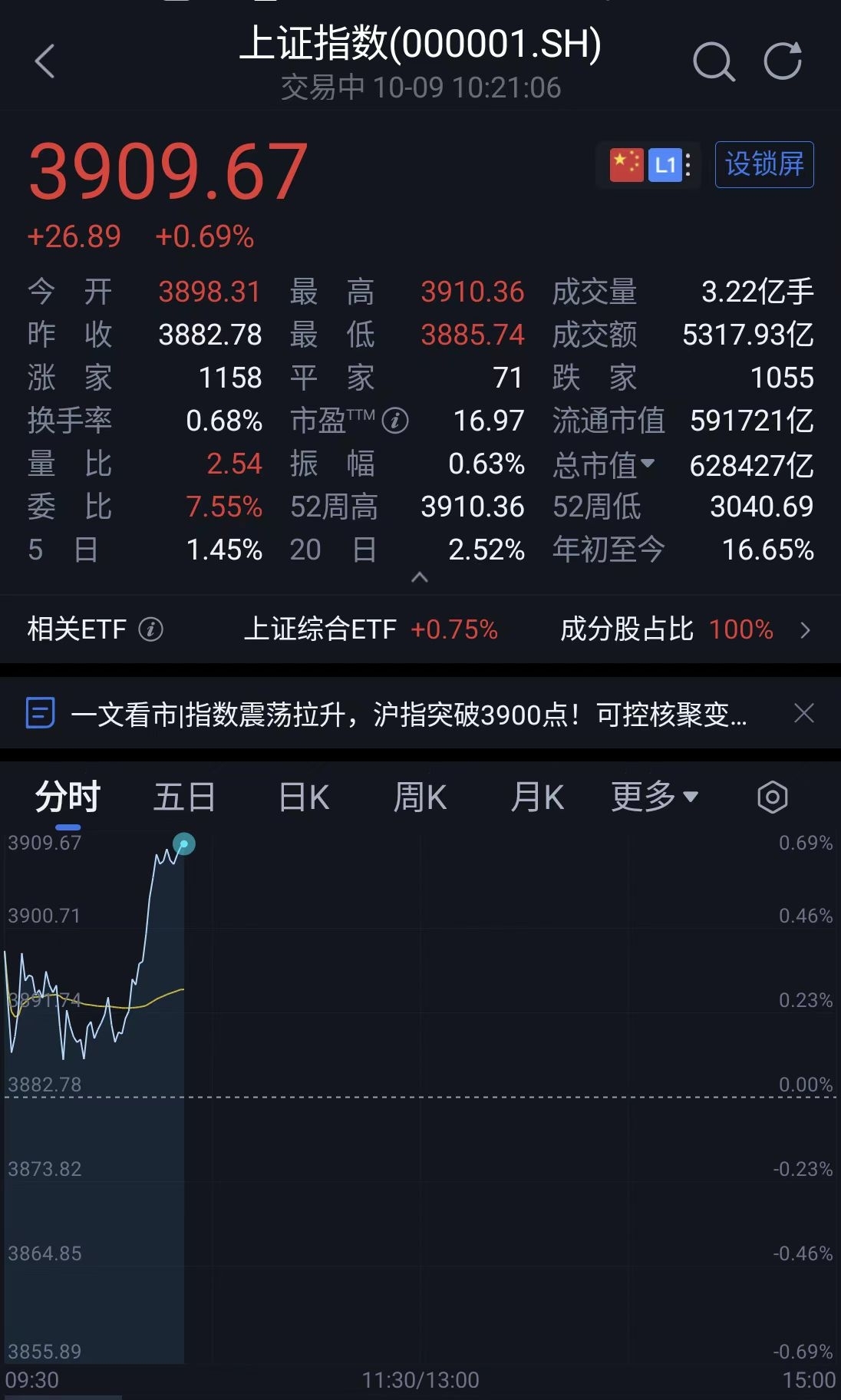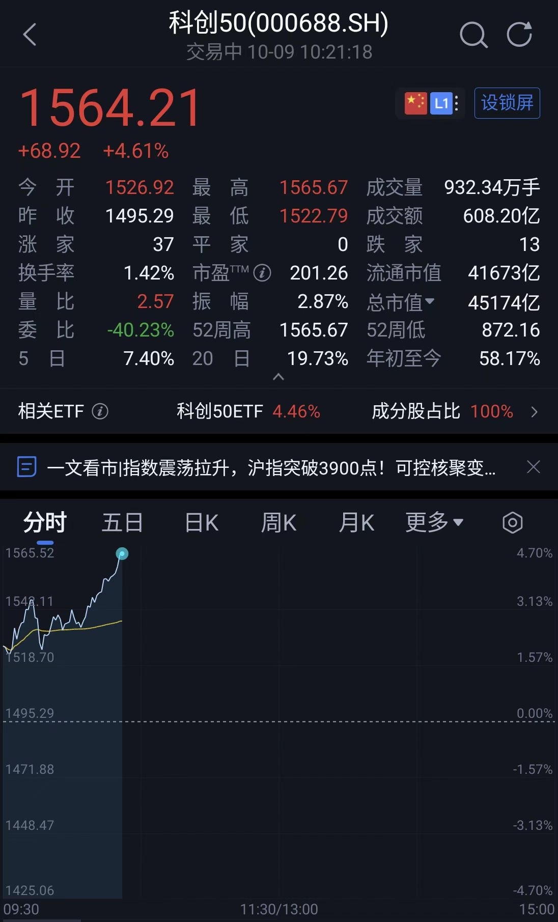 沪指突破3900点,科创50涨幅超4.6%