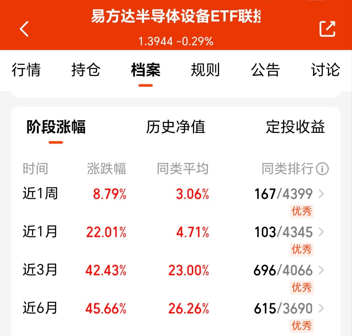 这波半导体行情真的是太香了吧!不但持续带来领涨节奏,并且利好消息也在不断释放,在这种利好推动下,我一直看好的$易方达半导体设备ETF联接C(OTCFUND|021894)$目前实时估值大涨5%, 近一个月涨幅超22%,业绩表现远超于同类涨幅,而当下海内外对算力需求激增,半导体设备更是最底层的支撑,我觉得后市行情仍然值得期待,所以选择果断布局起来了!