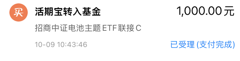 今日再顺势加仓招商中证电池主题ETF联接C1千元,此前已经建仓,最近飙升,可惜仓位太少,因此持续布局中。$招商中证电池主题ETF联接C(OTCFUND|016020)$