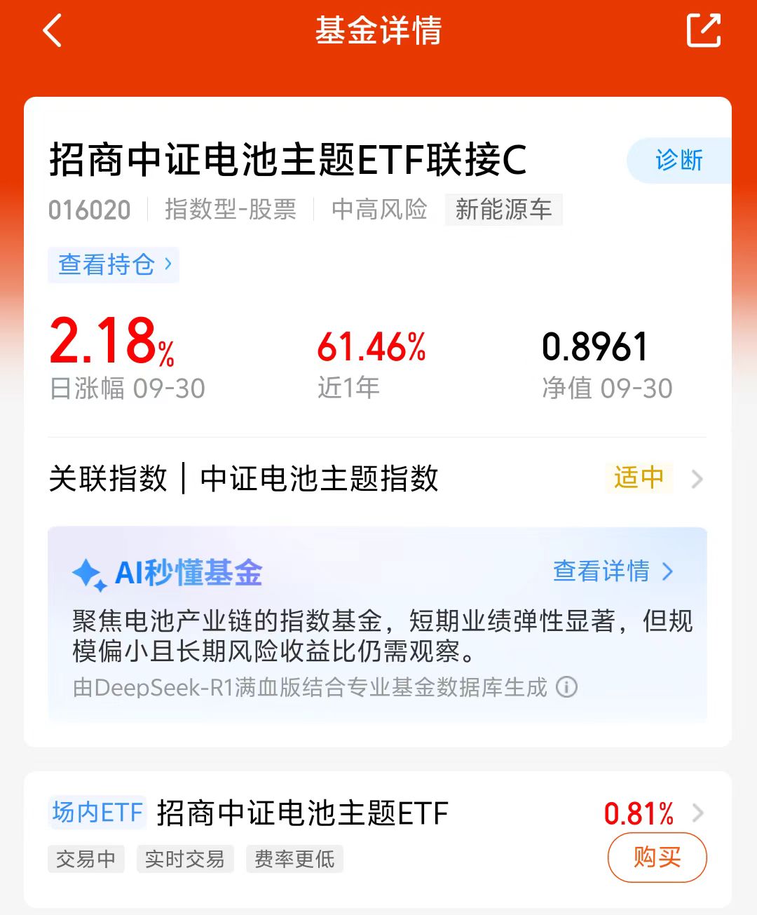电池板块表现不错,节后继续上涨,全球固态电池开发商QuantumScape于9月30日宣布与材料科技巨头康宁公司建立战略合作伙伴关系,双方将共同推进陶瓷隔膜的规模化量产!近期利好消息不断,技术突破密集涌现,固态电池产业化进程提速!电池板块发展前景不错,$招商中证电池主题ETF联接C(OTCFUND|016020)$近一个月涨了34.25%,近三个月涨了63.49%,表现不错,看好这个方向,我准备分批加仓!