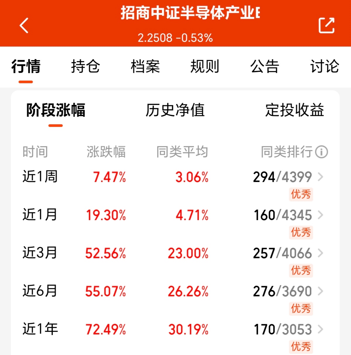 今日市场行情迎来开门红,尤其是我看好的$招商中证半导体产业ETF发起式联接C(OTCFUND|020465)$聚焦于半导体产业,实时估值大涨6%,近一年涨幅超72.49%,是同类中近一年第一的存在,而随着日韩股市政策红利延续,港股科技股也带动A股半导体板块出现补涨,同时高盛也在上调中芯国际和华虹半导体的目标价,我觉得后市行情非常值得可期,我也准备开始定投起来了!
