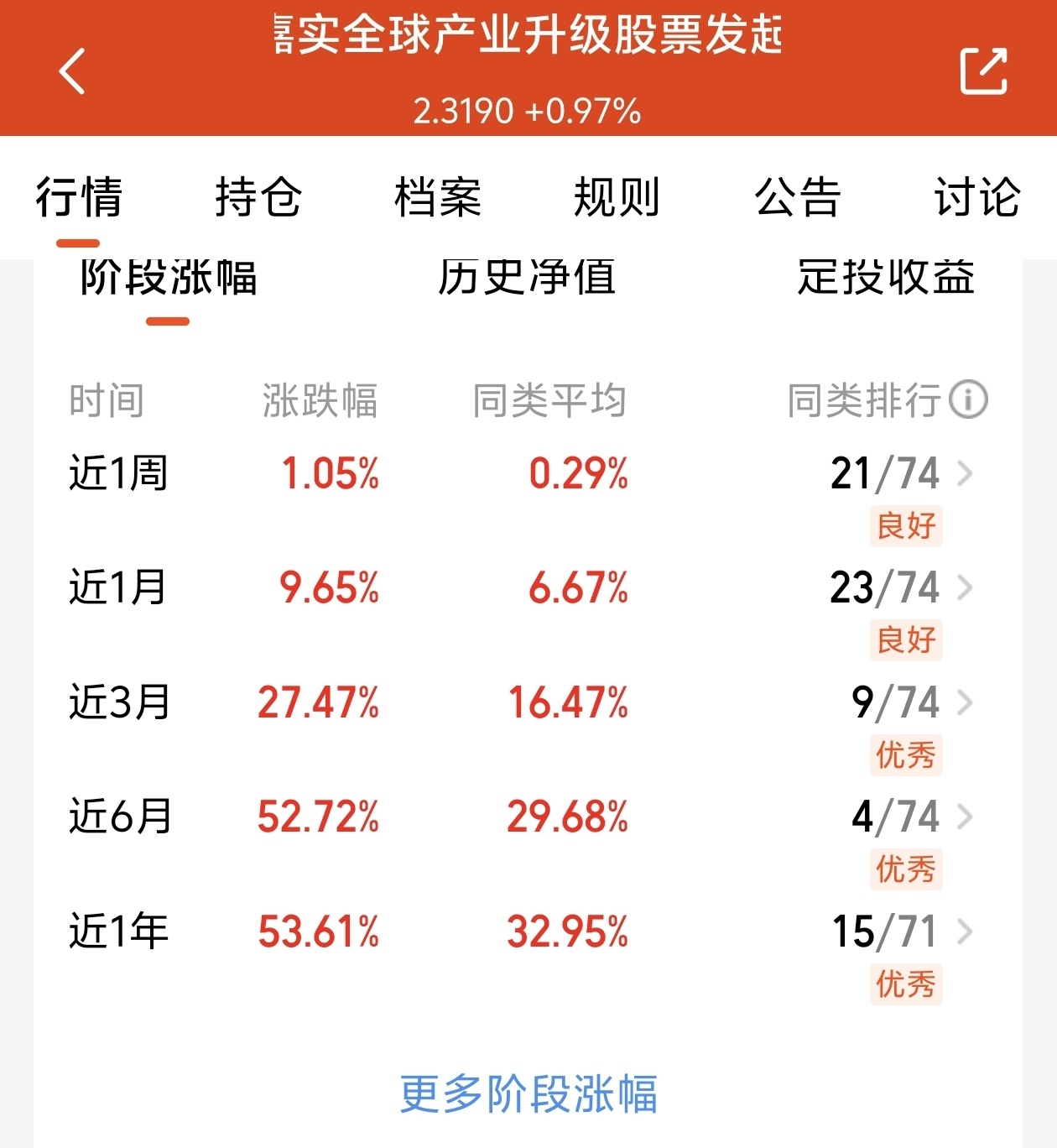 今天的行情也迎来了全面的上涨,表现的也是非常的给力,收益率高。$嘉实全球产业升级