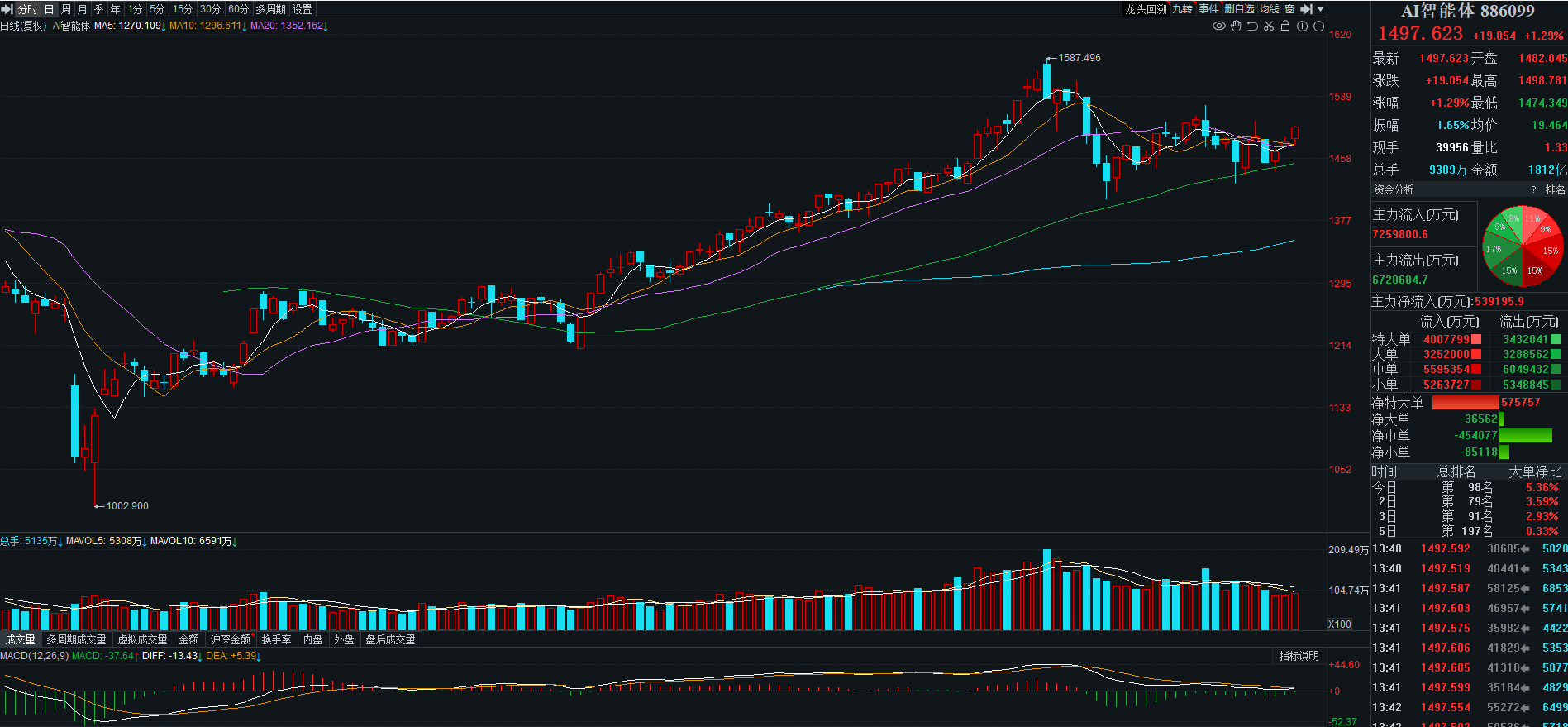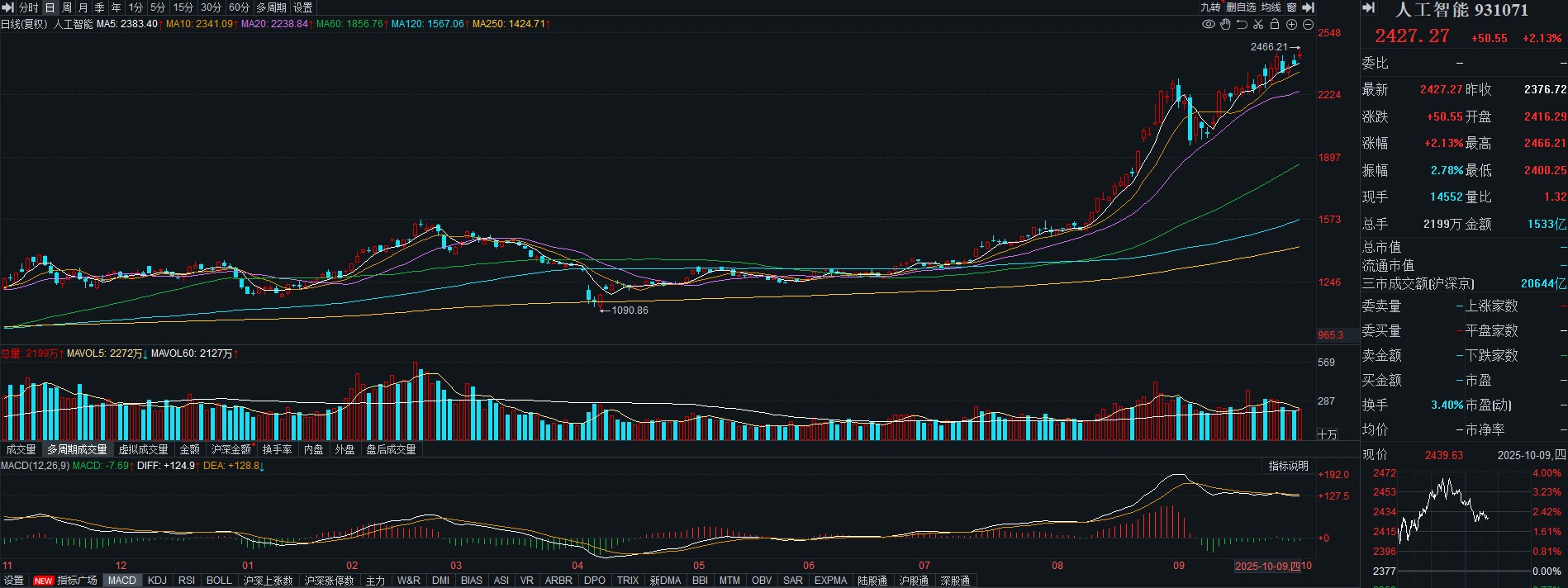 人工智能震荡走强,指数涨幅近3%,多头趋势完好,当下可以继续格局。