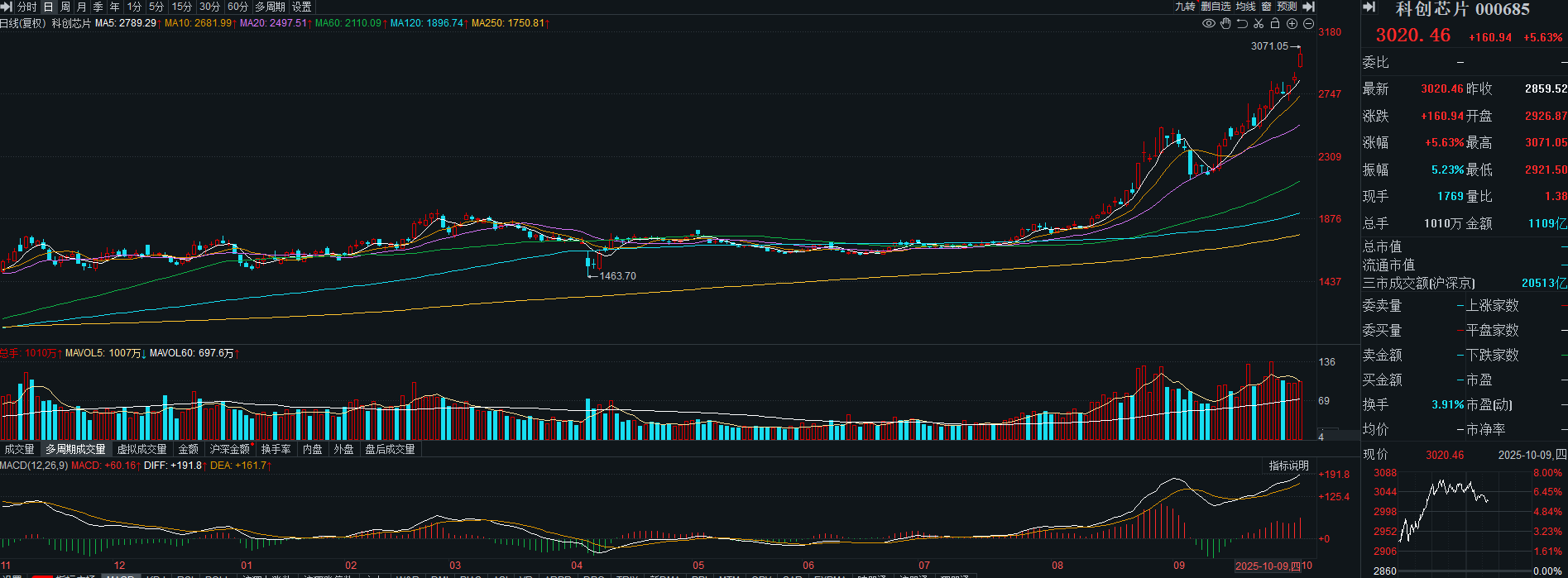 科创芯片高开高走,指数大涨近7%,光头光脚的大阳线实在是太喜欢了,还好M了不少,所以我现在就躺着吃肉,如果尾盘继续强势不回调,那我就继续格局。