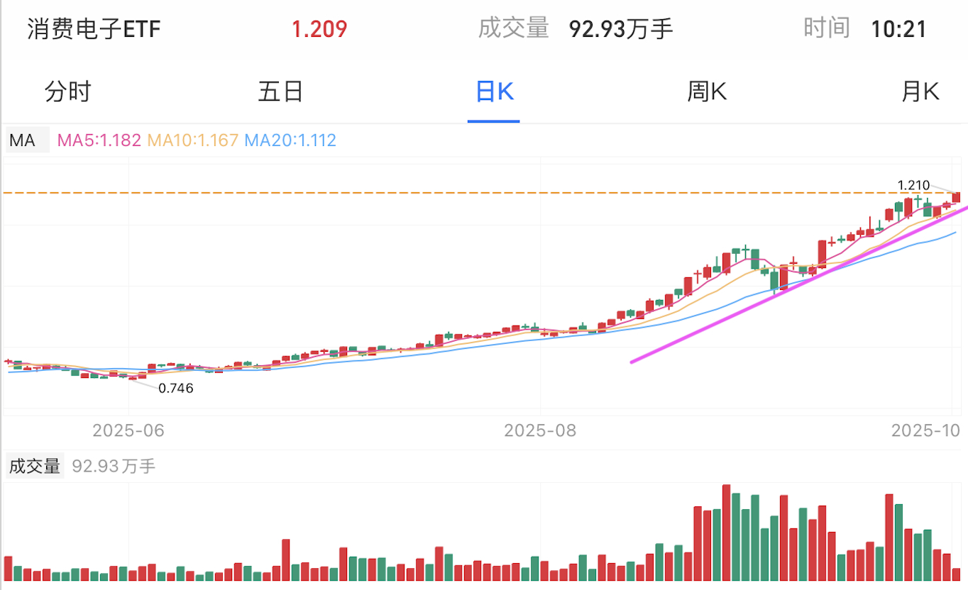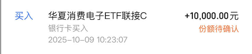 今日再加仓1万元。近期消费电子板块强势回暖,AI手机、折叠屏等创新加速落地,苹果产业链情绪高涨,行业景气度持续提升。技术面上板块完成调整并放量突破,今日强势飙升,趋势明显转强。该基金紧密跟踪消费电子指数,流动性稳定、弹性十足,兼具短期反弹与中期布局价值。看好AI驱动下的电子创新周期,持续加仓中。非投资建议。
