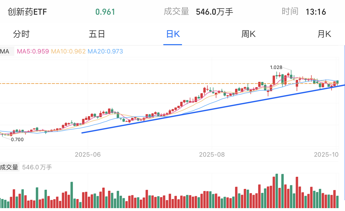 创新药和港股医药近期大幅上涨,后力竭盘整。最近在中长期上涨趋势线有止跌迹象,今日下跌,但没有跌破支撑位,那么依旧盘整阶段。