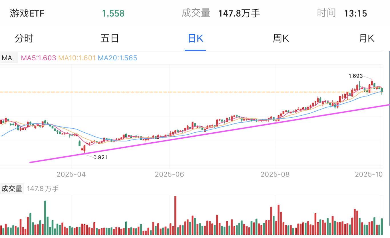 游戏此前突破关键压力位,近期一路震荡上行。这几日突然剧烈波动,短期陷入盘整,今日继续较大幅度回调,暂时没有跌破上涨趋势线。
