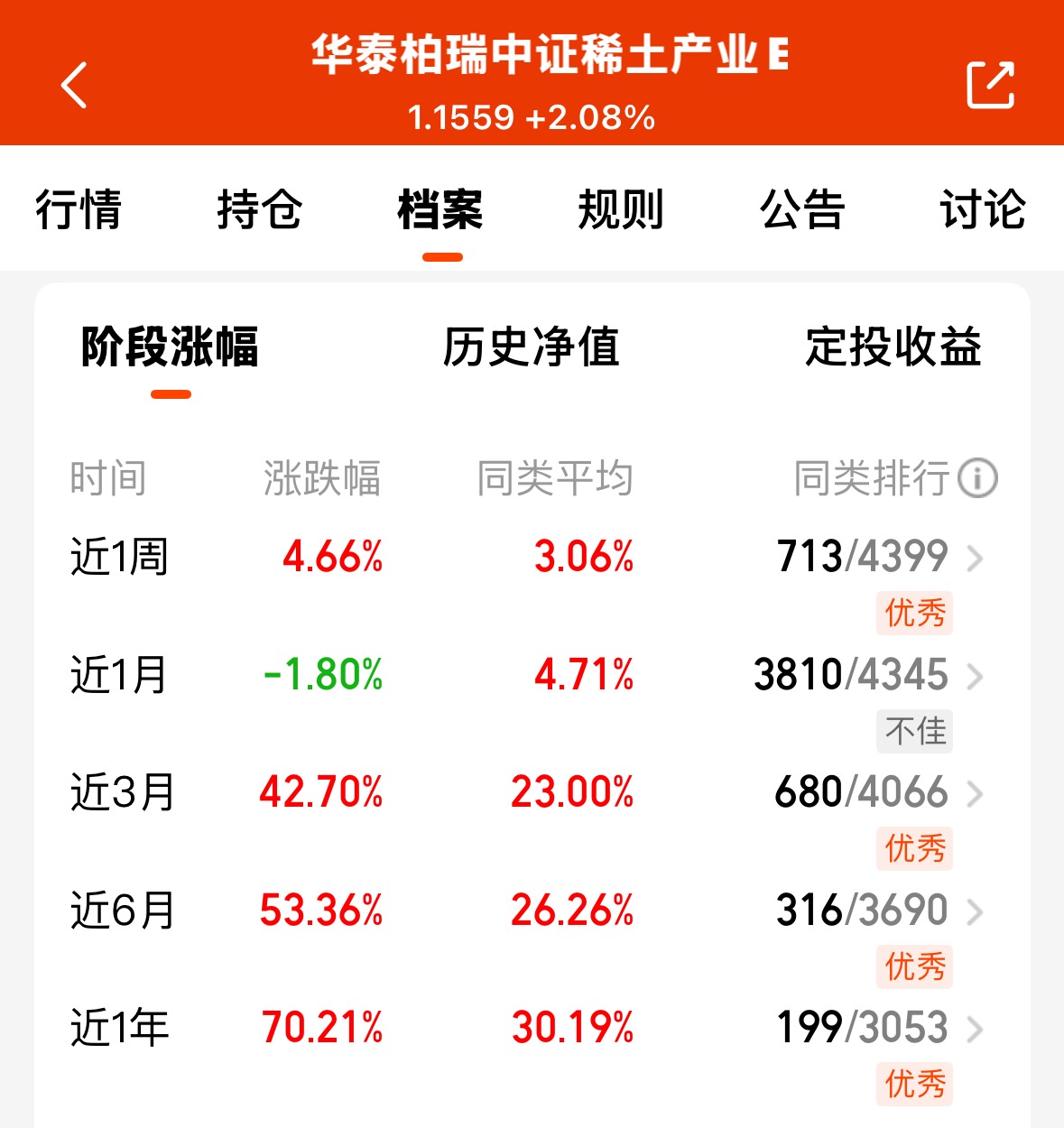 .稀土技术出口管制这步棋走得妙!$华泰柏瑞中证稀土产业ETF发起式联接C$ 今天大涨4.84%,近3个月42.70%,中国企业将受益于这个政策。
