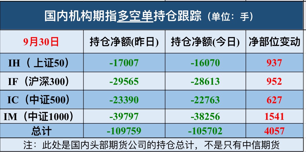 2、国内机构的期指多空单数据(前一交易日的情况):