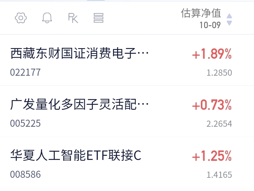 $东财消费电子指数增强E$ $广发量化多因子混合A$ $华夏人工智能ETF联接C$ #10月基金投资策略#