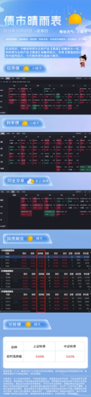 先说结论:今晚信用债为主的产品【微涨】的概率大一些,利率债为主的产品【微涨】的概率较大,存单【微涨或挂0】的可能性较大。今天整体债市盘面小晴天。