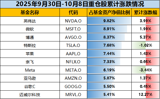 【重仓涨跌】9月30日-10月8日华宝纳斯达克精选前十大重仓股累计8涨2跌,9月30日美元兑人民币中间价↓0.05%。