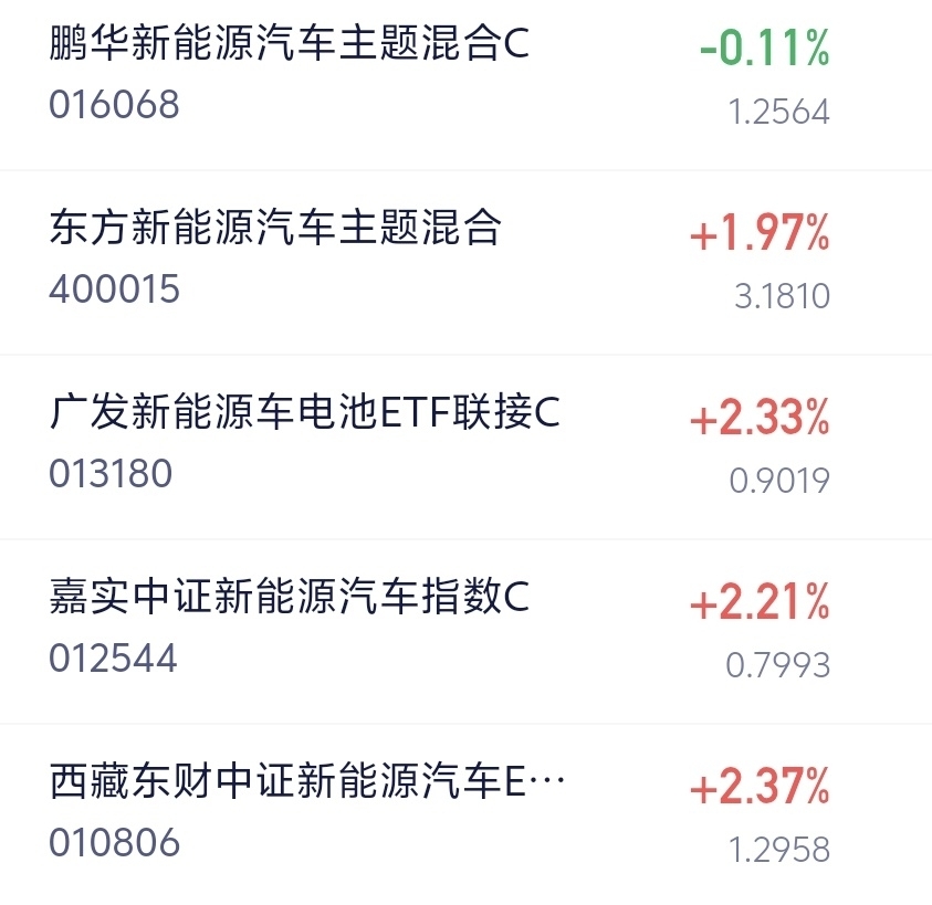 $东财新能源车C$ 今日估值2.37%,挺不错的,在同类中表现突出