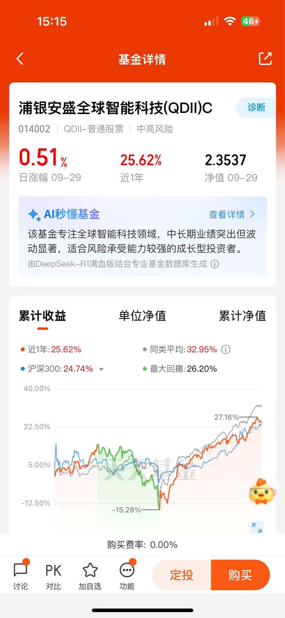$浦银安盛全球智能科技(QDII)C$浦银安盛全球智能科技完全不限购,牛市看仓位