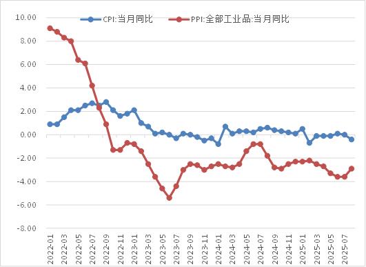 高频数据来看,三季度基本面边际转弱,政府债上半年前置发行,叠加关税扰动下的抢出口效应,上半年GDP同比增速录得5.3%。财政前置发力导致后续增速难以维持,6月开始高频数据出现拐点,6月工业增加值同比增长6.80%,增速较5月增加1pct,主要系上半年专项债发行后项目逐步开工。但6月社会消费品零售总额增幅收敛幅度较大,表明国补力度减弱后内需开始边际转弱。7-8月工业增加值、社会消费品零售总额、固定资产投资连续两个月边际弱化,其中固定资产投资增速6月当月开始转负为-0.1%,7、8两月增速录得-5.2%和-7.1%,降幅持续扩大,整个三季度基本面是持续转弱,但是反内卷被市场视作新一轮供给侧改革,权益市场反应较为强烈,风险偏好持续上行。