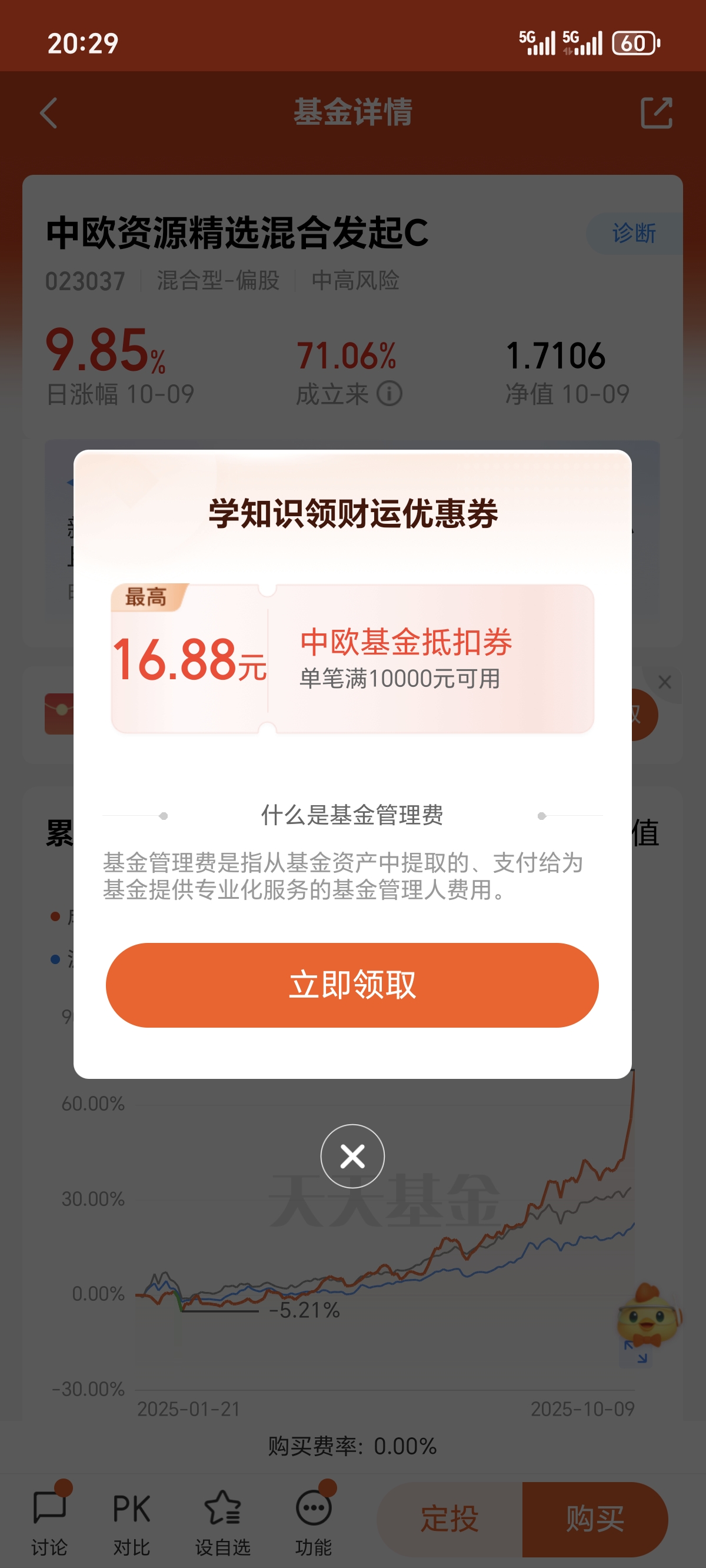 今日市场迎来普涨行情,A股三大指数稳定上涨,个股之间也表现出色,其中资源领域更是强势大涨,而我一直看好的$中欧资源精选混合发起C(OTCFUND|023037)$今晚涨幅接近10cm,不愧是主动管理的基金,这也太牛了啊,现在详情页还有肉包,我准备拎包上车了!