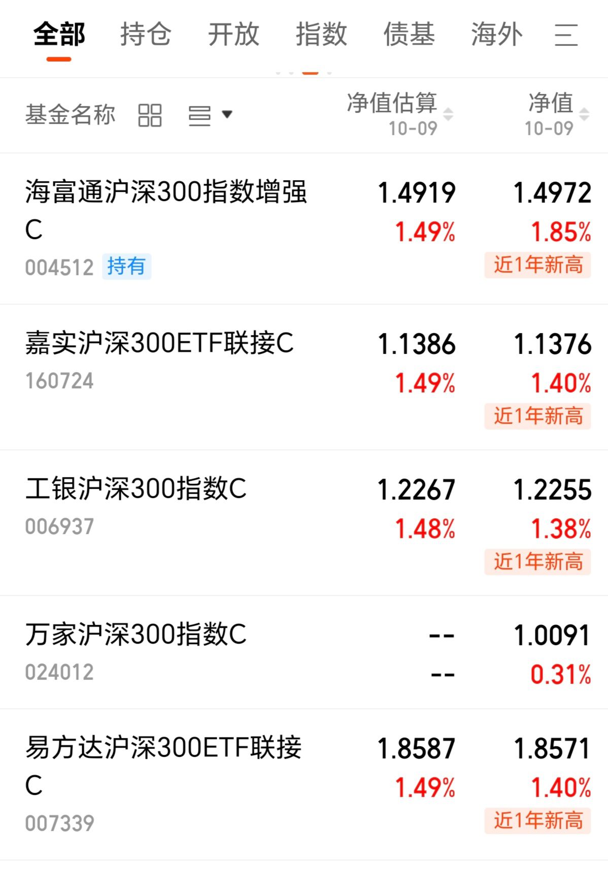 $嘉实沪深300ETF联接C(OTCFUND|160724)$涨1.4%