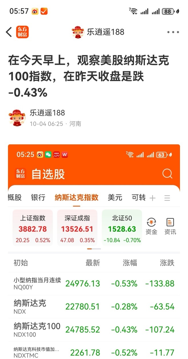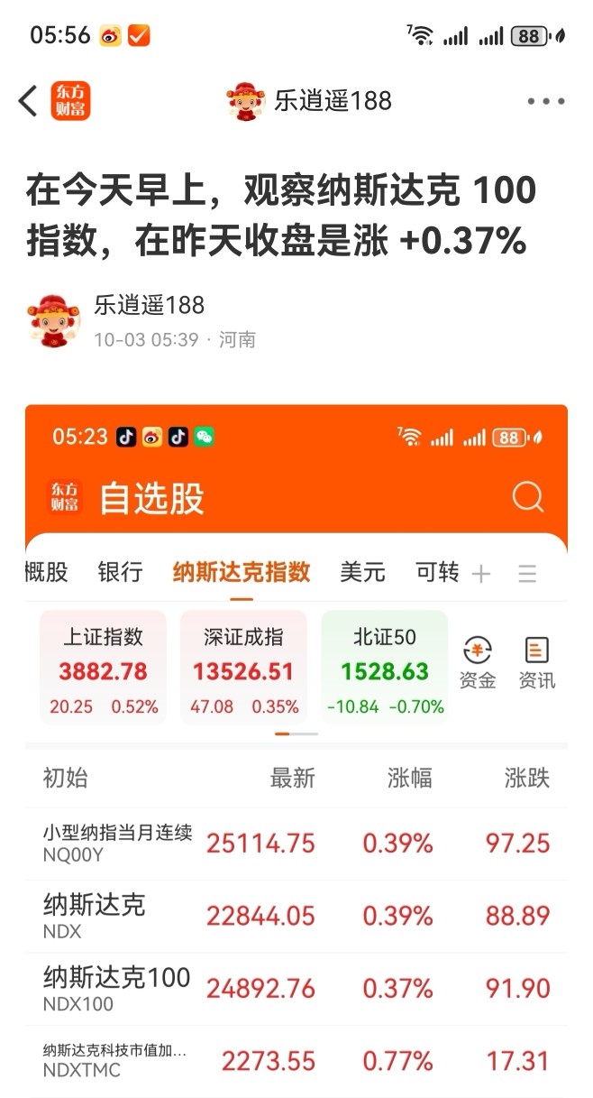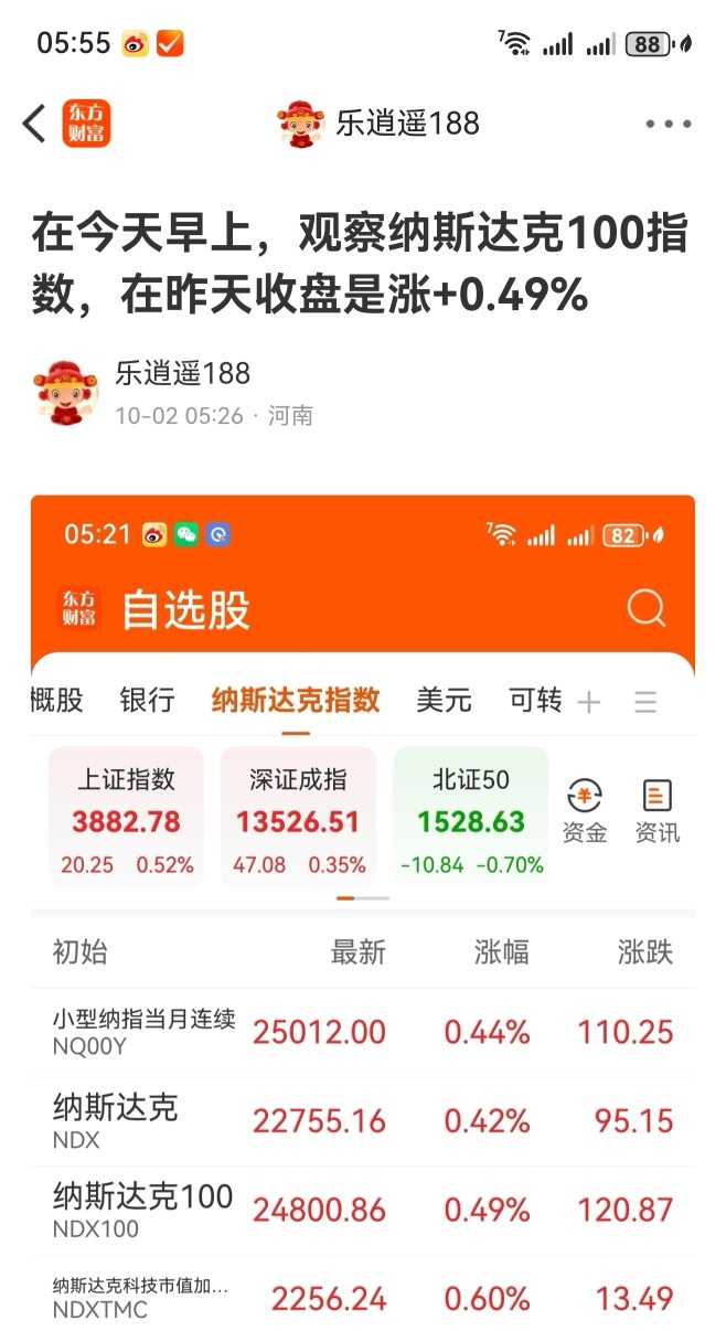 在今天早上,也提前观察观察了在10月2日早上至昨天周四早上,发的美股纳斯达克10