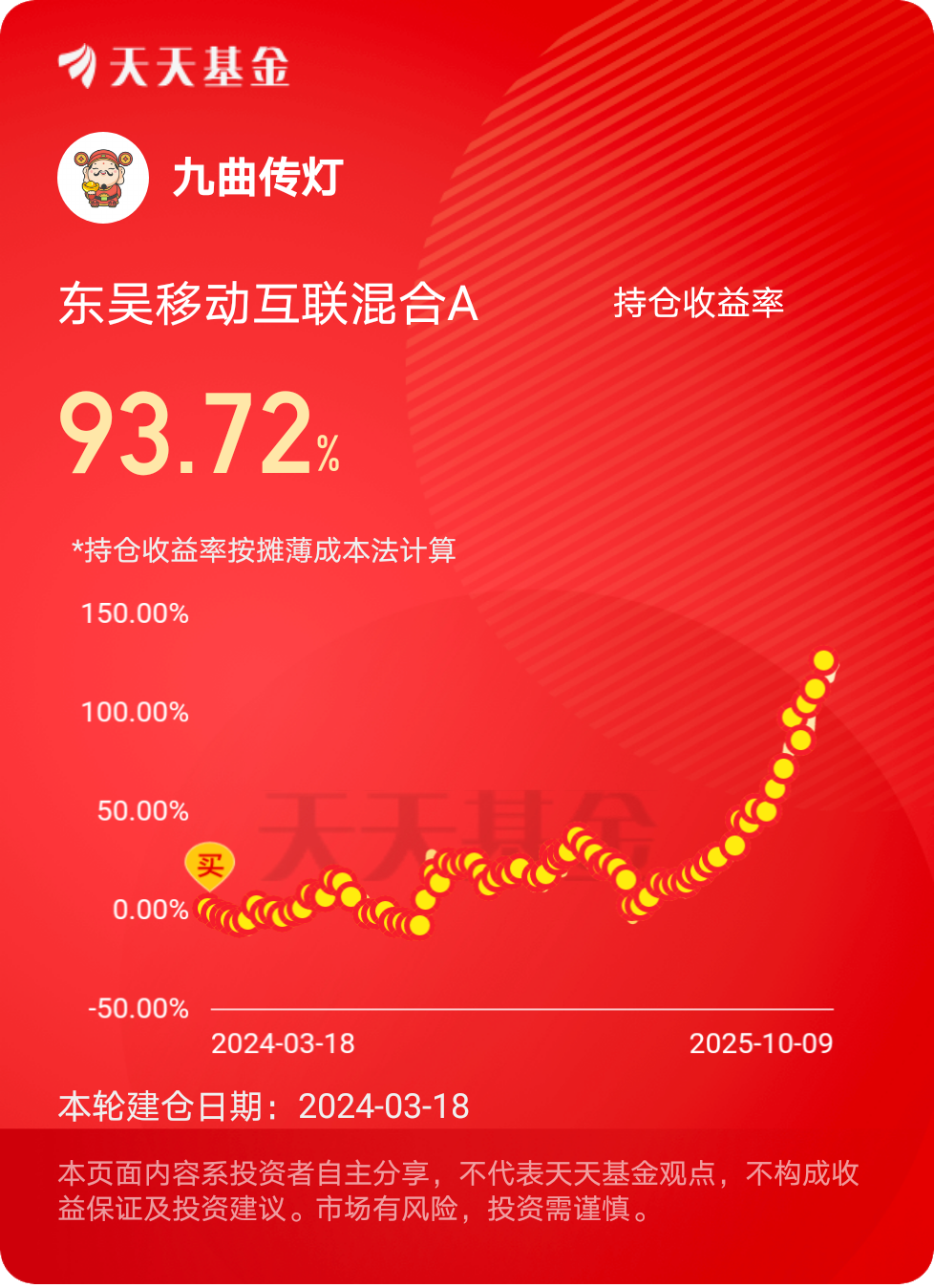 2024年3月18日起,开始在天天基金买入基金,共持有基金2只;周五,东吴移动互联混合A买入250元,累计买入37500元。