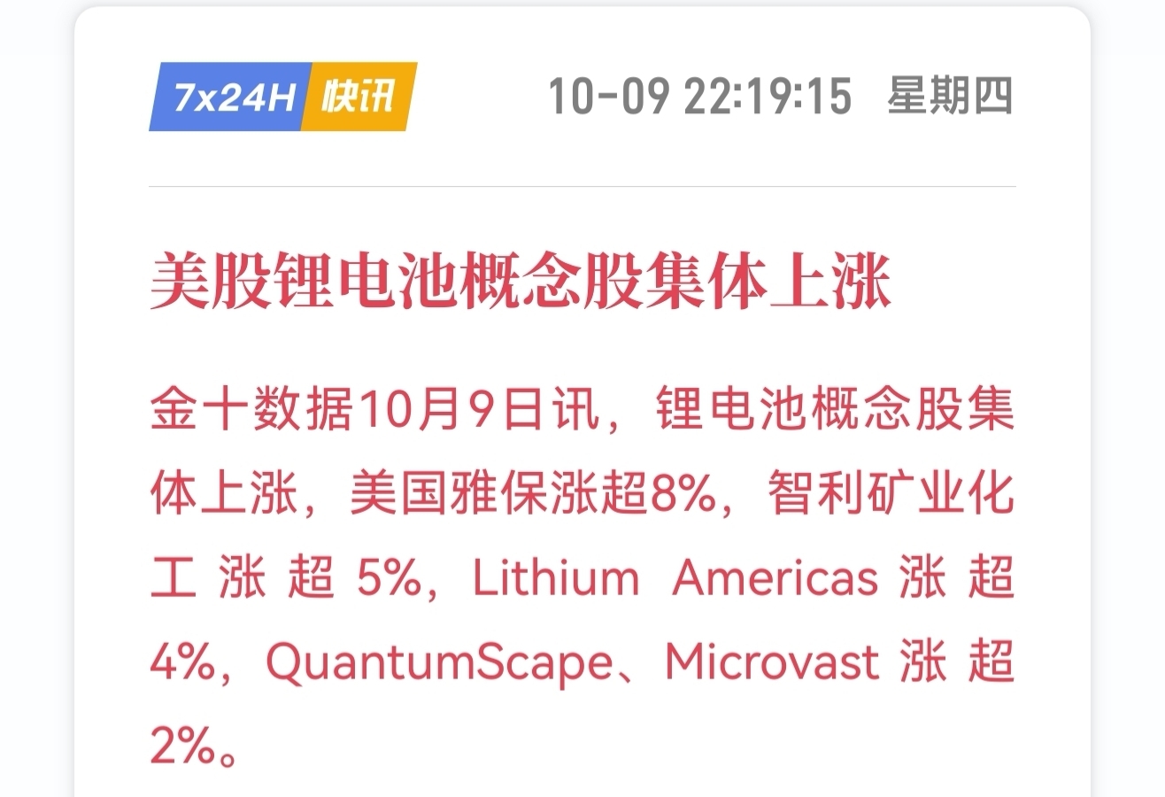 在昨天晚上的时候,查看到消息说美股锂电池概念股集体上涨的。