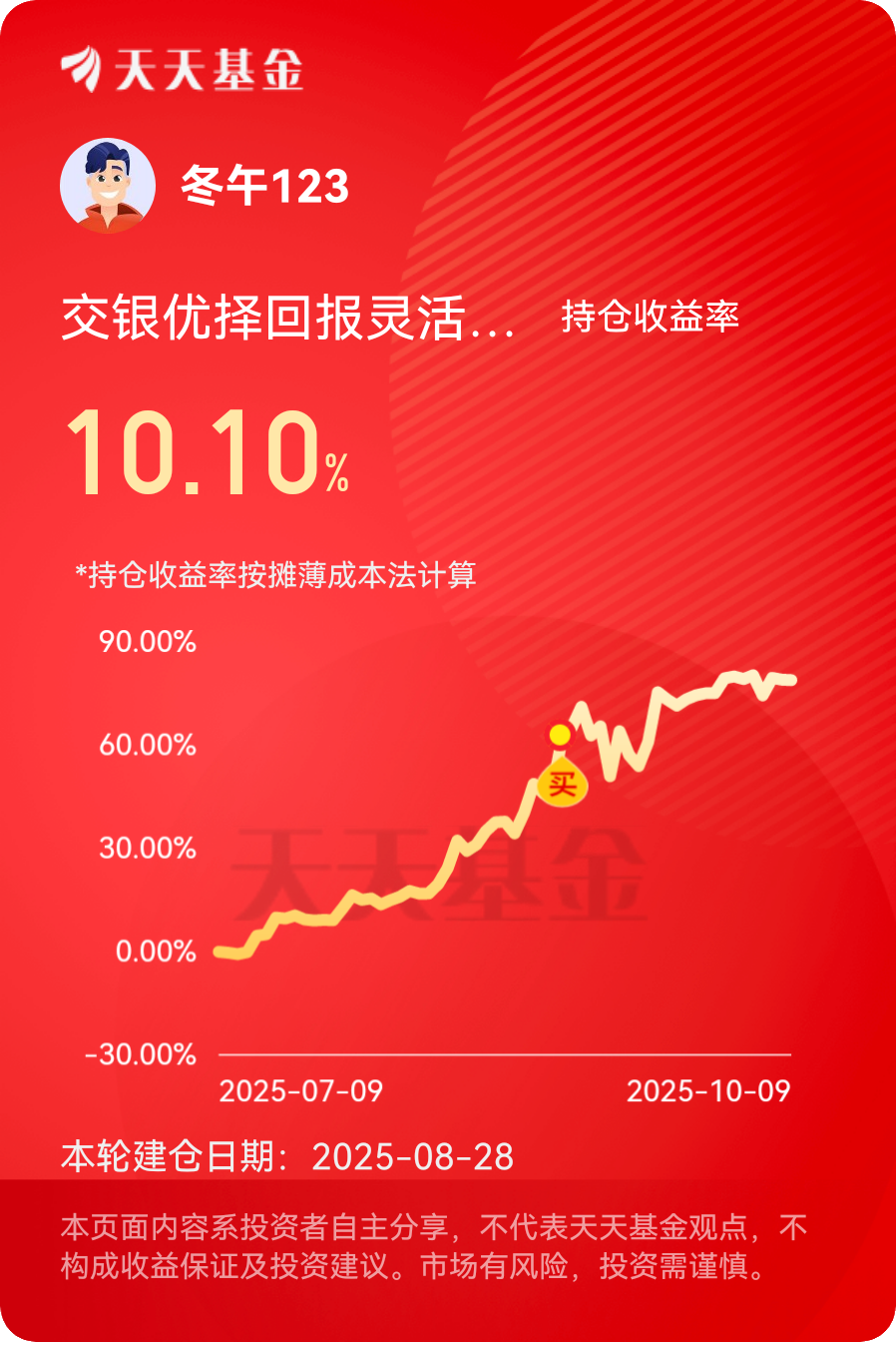 市场震荡期,它侧重稳健回报,专业团队帮着把控风险 。$交银优择回报灵活配置混合C$ #晒收益#