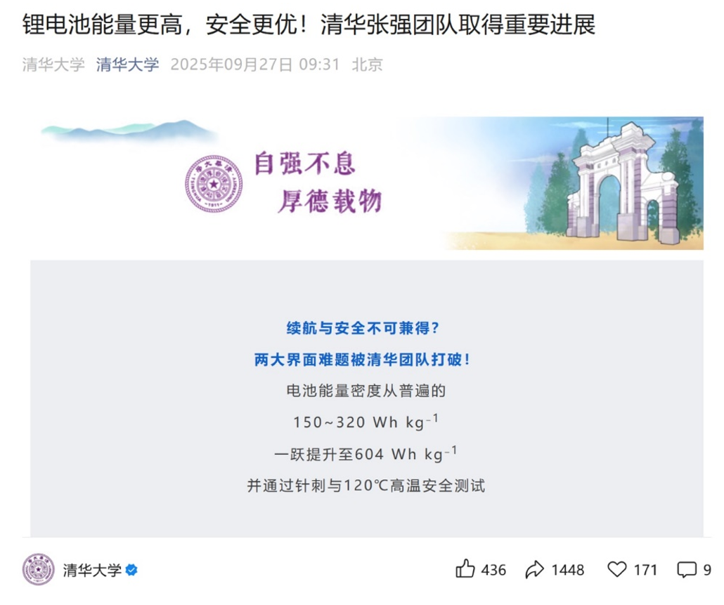 日前消息,清华大学某科研团队在固态锂电池领域取得突破,为解决固态电池界面阻抗大、离子传输效率低的关键难题提供了新路径。该研究成果已于近日发表在国际学术期刊《先进材料》上。