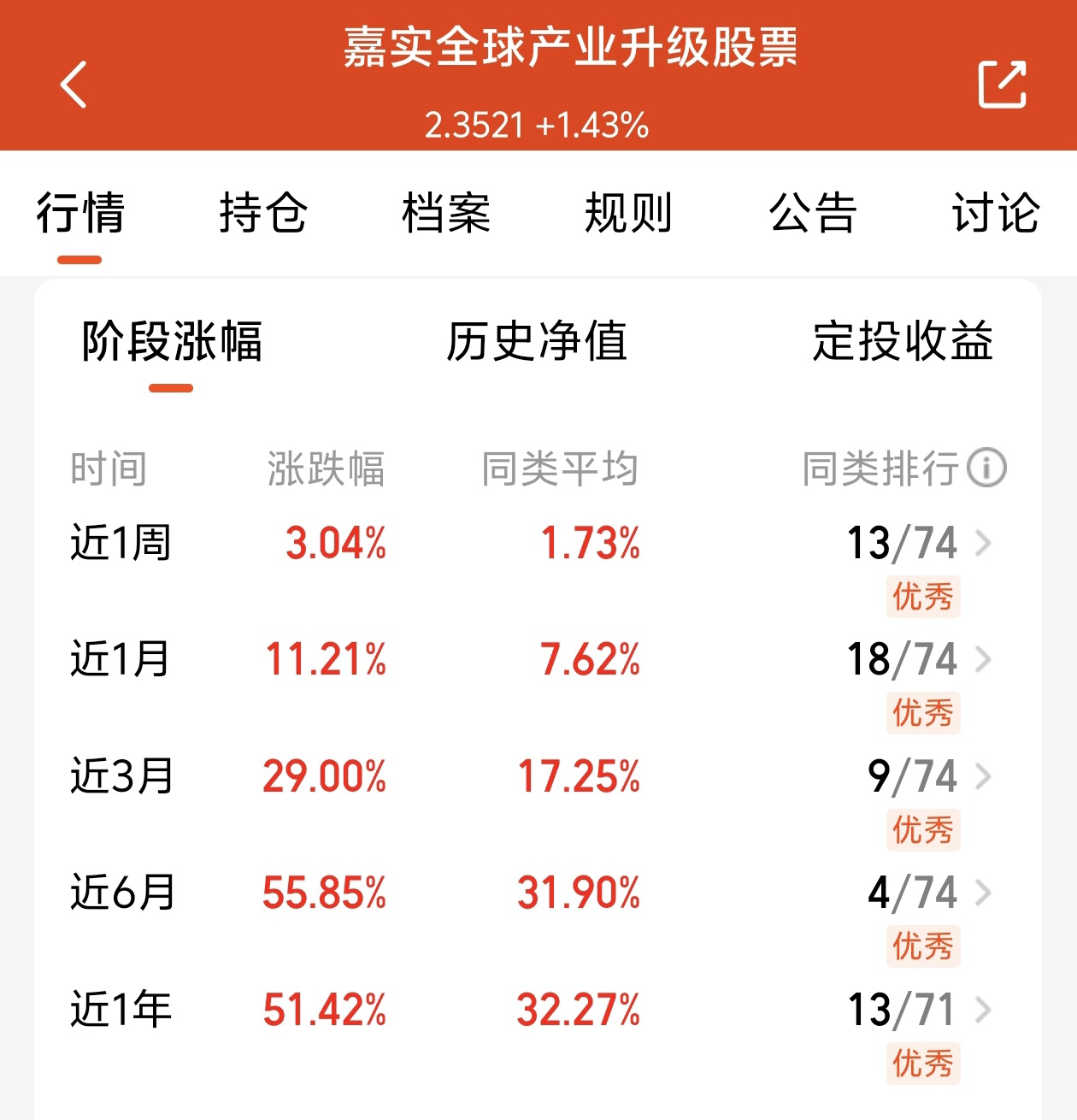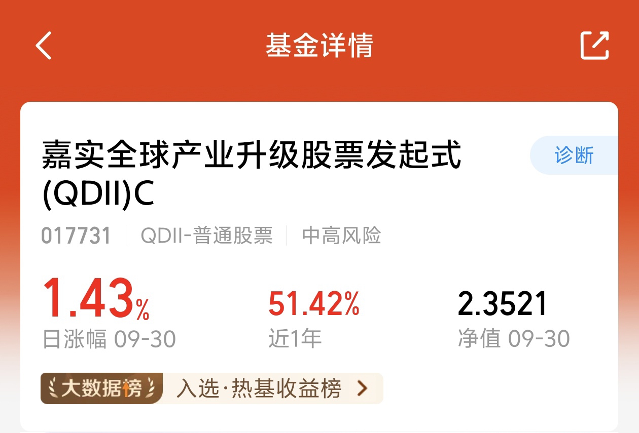 值得期待呀,宝子们,最近的行情也是非常的不错,收益率高。$嘉实全球产业升级股票发