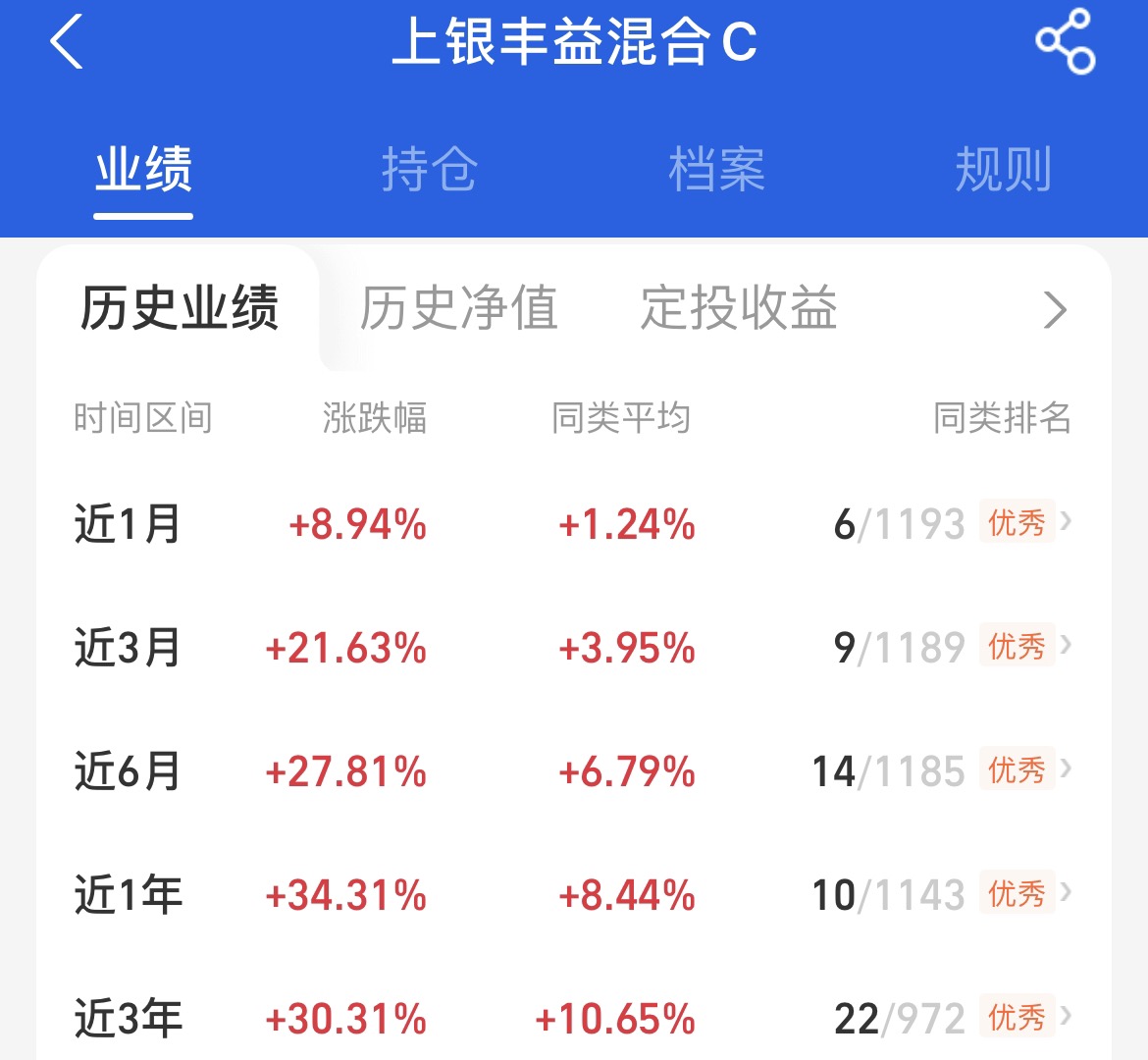 这个宝藏产品被我发现了还真是开心,买了之后就一直在涨,挺不错。$上银丰益混合C$