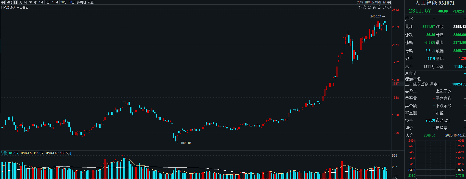AI智能体震荡走低,指数超跌1%,日K线回踩均线支撑,短期行情也有朝着60日均线走低的风险,不过我目前对这个市场还比较乐观,我暂时躺平持有。