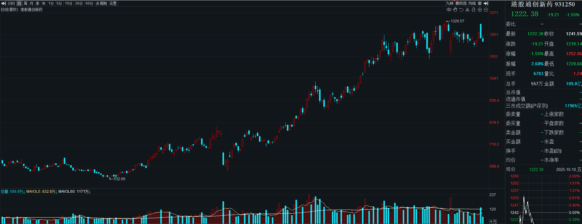港股通创新药震荡走低,短期行情有继续回踩60日均线的风险,不过目前距离60日均线已经不远了,所以我决定再看看,多给创新药一些机会,只要60日均线不破位,我都会继续拿着。