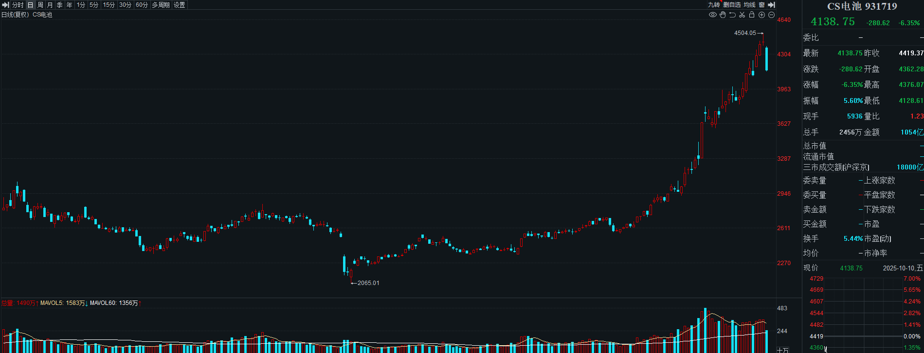 电池真的是有点伤心了,CS电池指数震荡走低,指数超跌6%,一根大阴线打下来,直接触及20日均线的支撑,这种跌幅没法走,我暂时观望一下,等后市反弹一下再安排吧,不然今天走的挺可惜的。