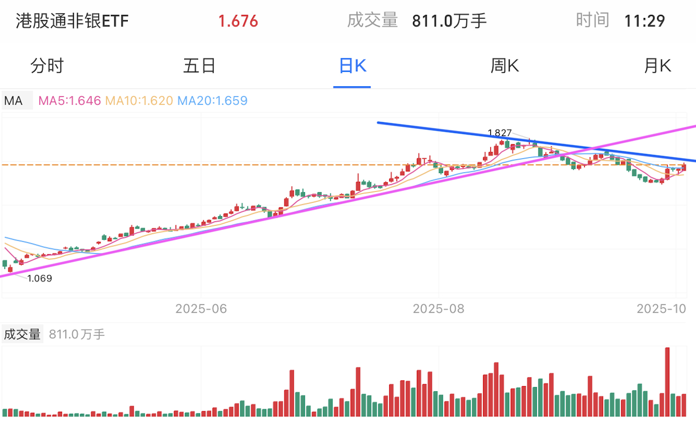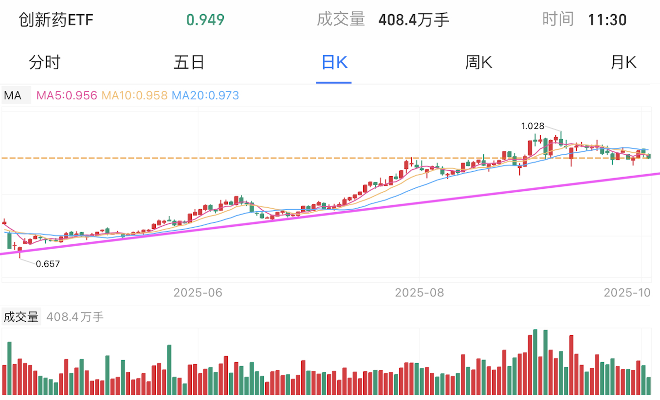 创新药和港股医药近期大幅上涨,后力竭盘整。最近在中长期上涨趋势线有止跌迹象,这两日震荡,没有跌破支撑位,依旧盘整阶段。
