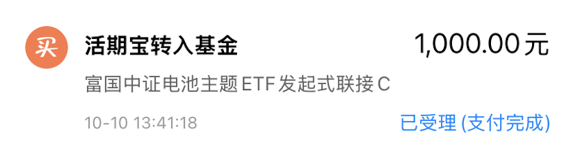 今日加仓1000元。近期电池板块强势反弹,欧洲8月新能源车销量超预期,国内电池排产提升、龙头满产,景气度回升。固态电池产业化提速,市场信心增强。电池指数突破箱体,MACD金叉放量,趋势上行,主力持续流入。电池行业进入加速上行周期,这只富国重仓宁德时代等核心龙头,弹性强、业绩优,本人已经建仓,继续顺势布局。非投资建议。