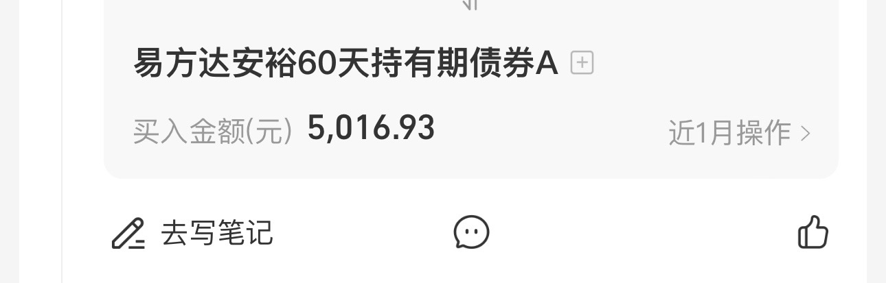 $易方达安裕60天持有债券A$ :小王今日上车5000元,目前信用债也有回暖的趋势,所以这时候我也要继续配备稳健型基金为我持仓保驾护航,昨天也是稳稳收了5个蛋,表现还是十分不错的,我觉得作为一个底仓也是比较合适,从最新的第二季度持仓来看,这是一只以信用债为核心配置,重点配置企业短期融资券和金融债,AAA级存单及政策性金融债占比超60%,信用风险可控,并且刘朝阳基金经理拥有18年固收从业经验,管理货币基金规模超3000亿元,任职回报也已经达到了7.13%,基金经理的能力也是比较出众,拉开长期收益来看,近一年的收益率达到2.67%,而近一年最大回撤只有0.09%,收益回撤比做得还是比较到位,所以综合考虑我今日准备上车5000建个底仓啦