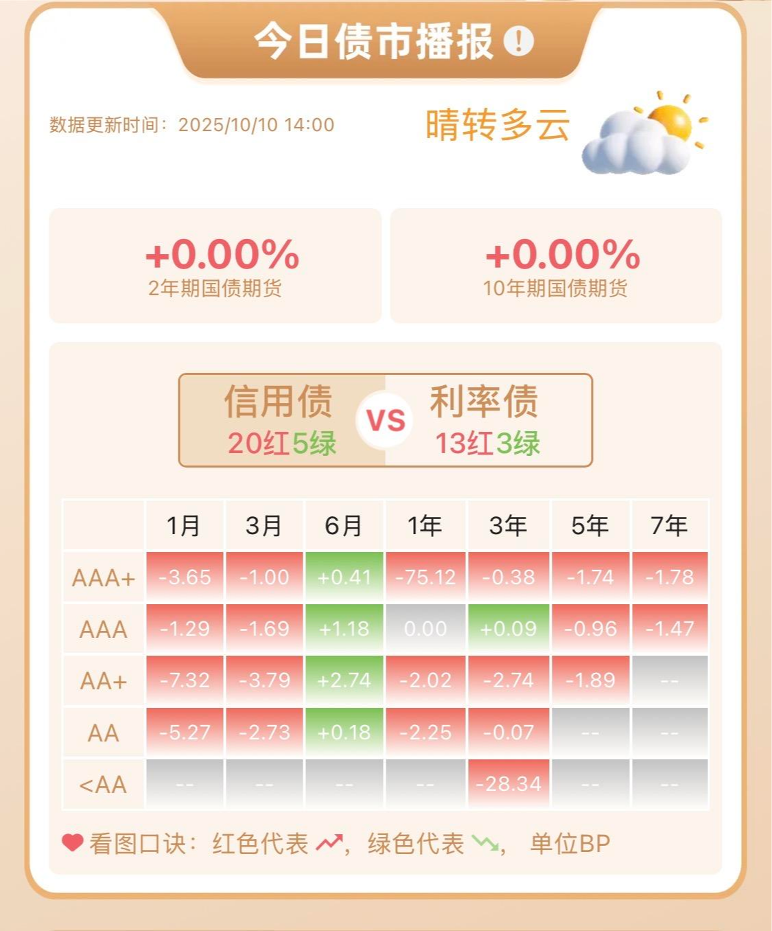 债市目前总体“晴转多云”,信用债、利率债均涨多跌少。