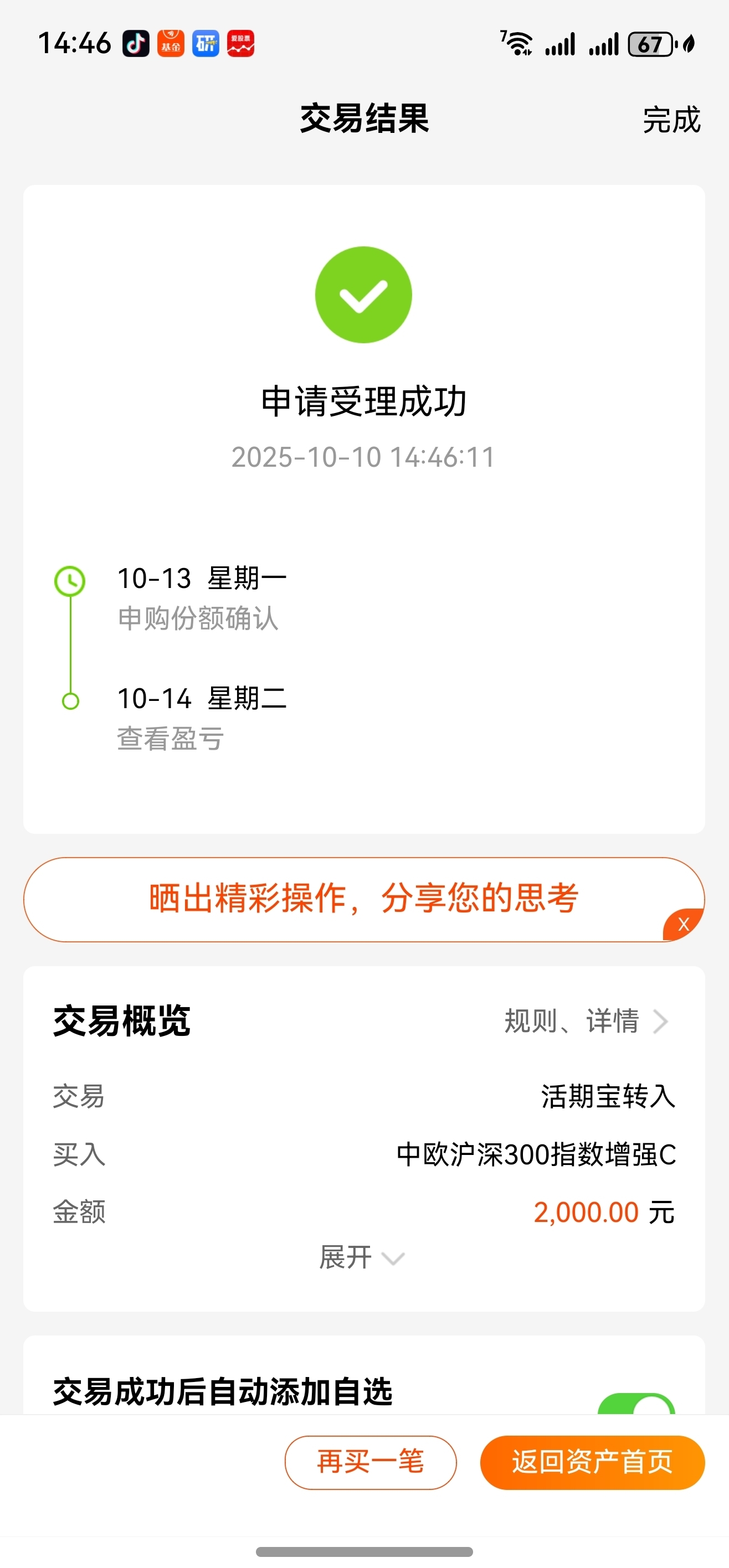 从下周一那天开始,到时候,我就只剩某股这1个沪深300指数基金了。