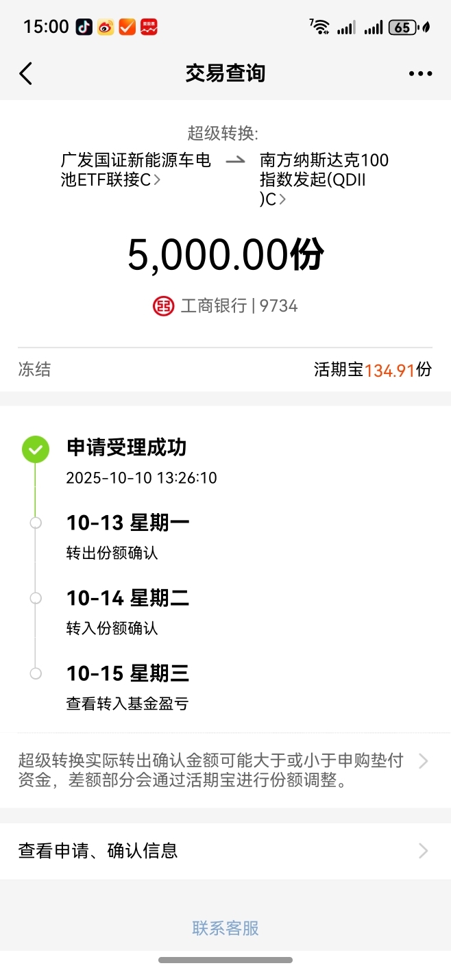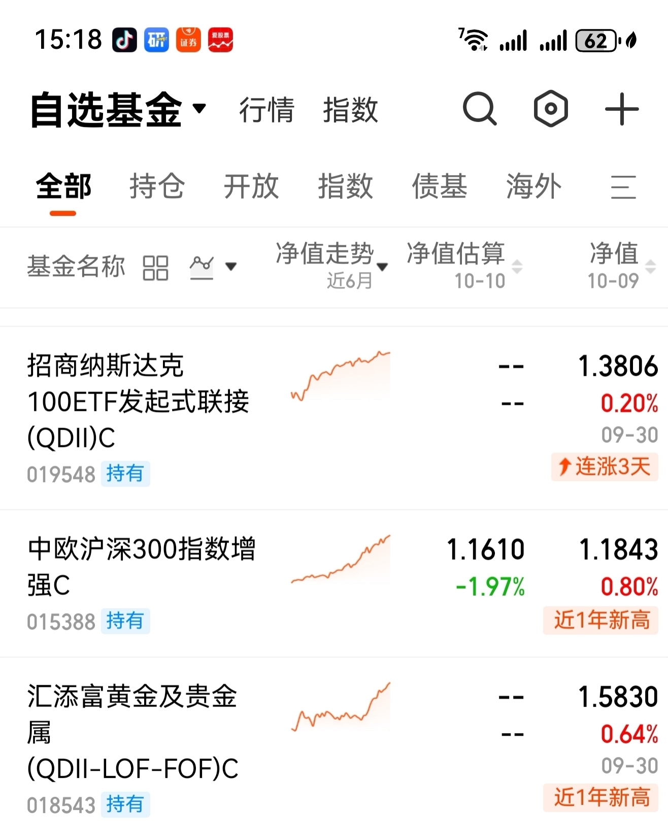 下周一那天开始,到时候就只剩1个美股纳斯达克100指数qdll基金+某股某个沪深300指数基金、与某个黄金及贵金属qdll这3个股票型基金了。(另外补充还有一个,在今天选择调仓换买某个美股纳斯达克100指数qdll基金。)